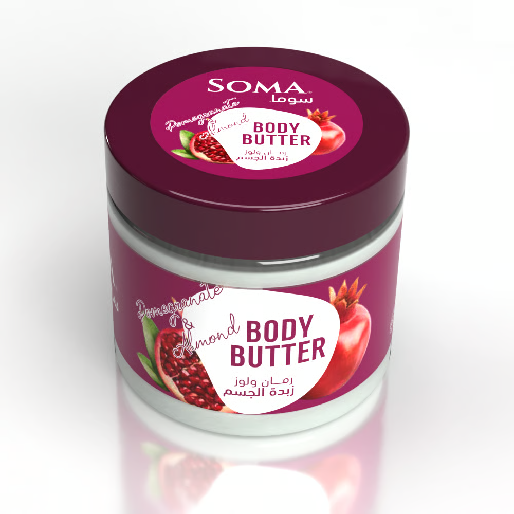سوما زيدة الجسم رمان ولوز، يساعد بشكل خاص في علاج البشرة الجافة ويساعد على اخفاء التجاعيد وعلامات تمدد الجلد. سوف يساعد الاستعمال اليومي على حماية البشرة من الجفاف، ويتميز بأنه غير دهني وتمت صياغته لاستعماله كمرطب لجميع أنحاء الجسم.