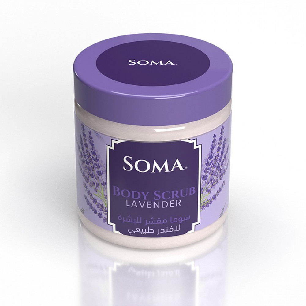 سوما مقشر الوجة والجسم من خلاصة حبيبات زهور اللافندر فكريم الصنفرة سوما ينشط الجلد ويجعلة متألقا ونظيفا وحيويا ً حيث ان هذه التركيبة المتقدمة تقوم بإزالة القشور الباهتة عن الجلد يستعمل هذا المقشر على الوجة وكافة أجزاء الجسم بحركة دائرية فهو مثالي لبشرة نقية وناعمة ولينة ذات لون مشرق موزع بالتساوي
