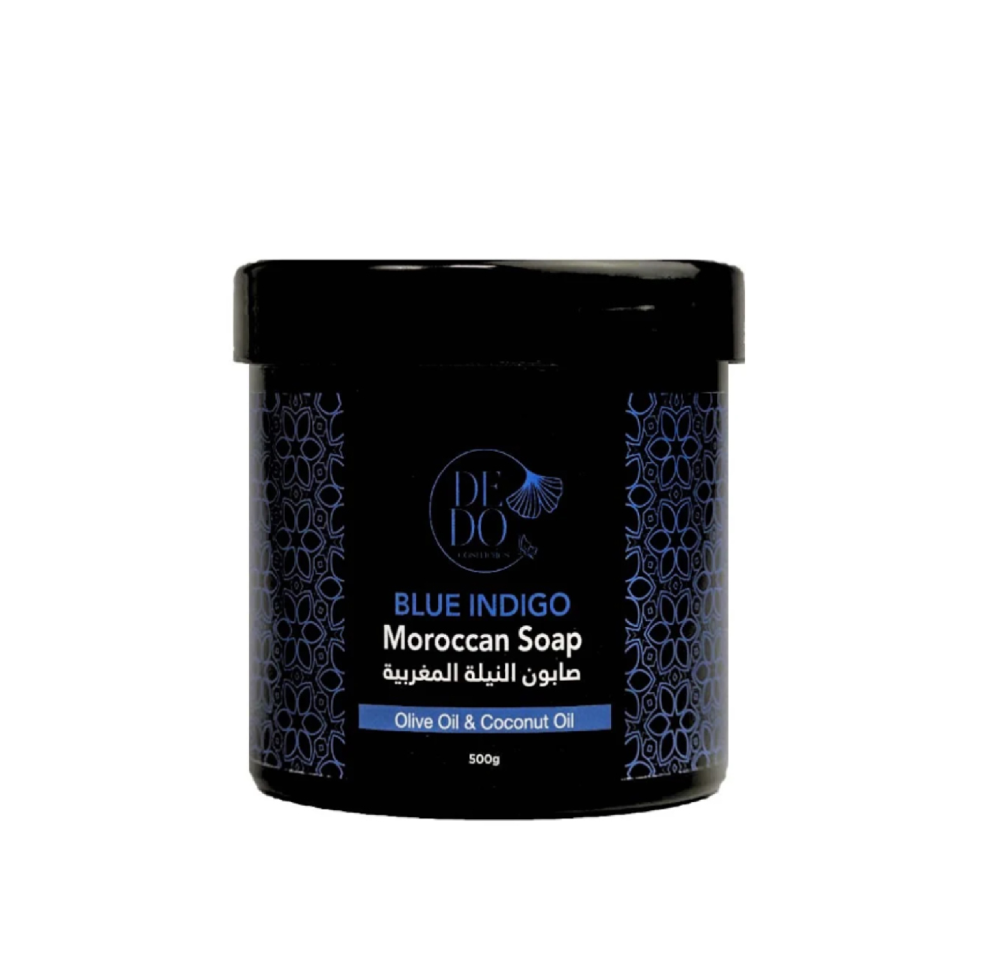 - صابون مغربي فاخر بالنيلة الزرقاء, ينظف البشرة بعمق ويمنحها ترطيباً استثنائياً.