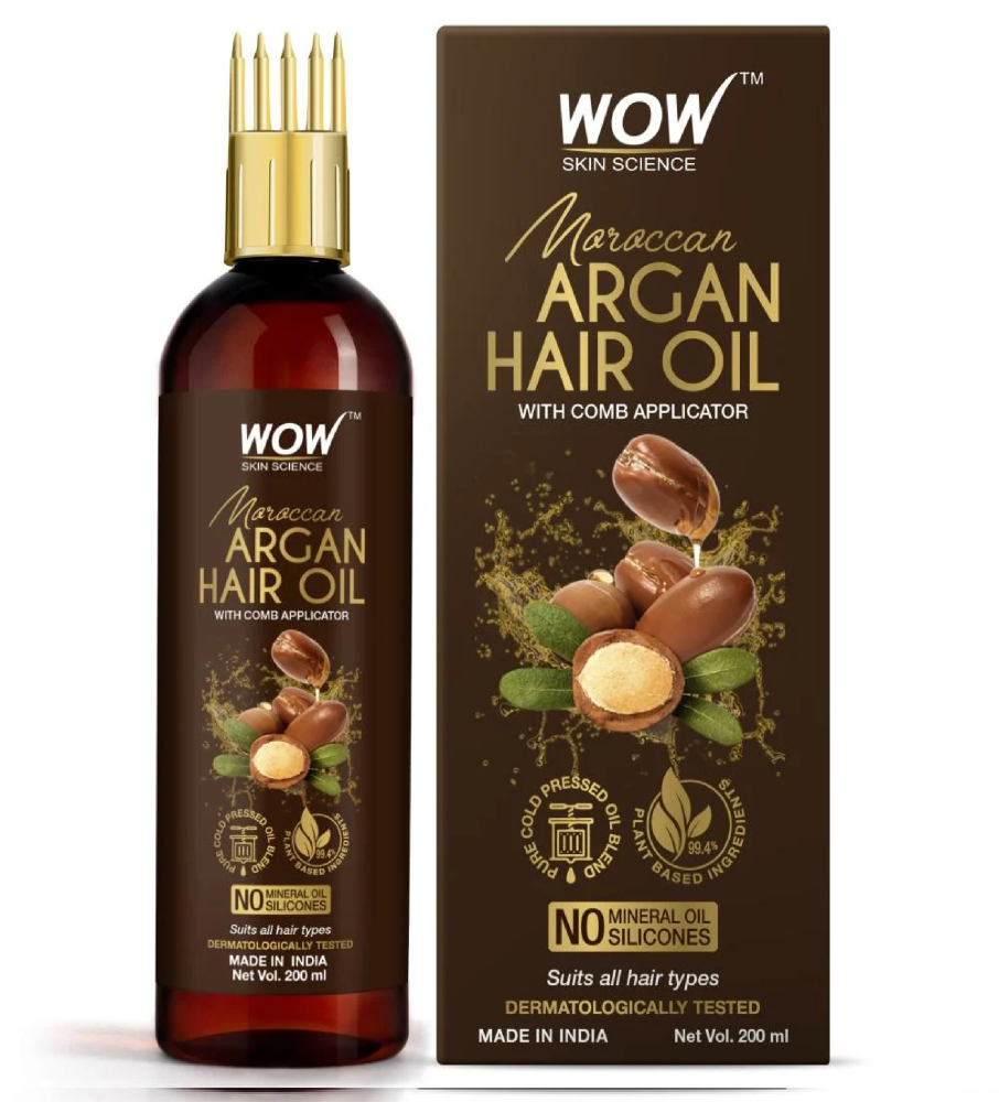 - زيت الأرجان المغربي غني بالأحماض الدهنية وفيتامين هـ. يساعد في توفير الترطيب لشعرك وتقويته وتحسين ملمسه. كما يمنع الجفاف المفرط. يساعد زيت الأرجان المغربي أيضًا في منع تساقط الشعر وتعزيز نموه.